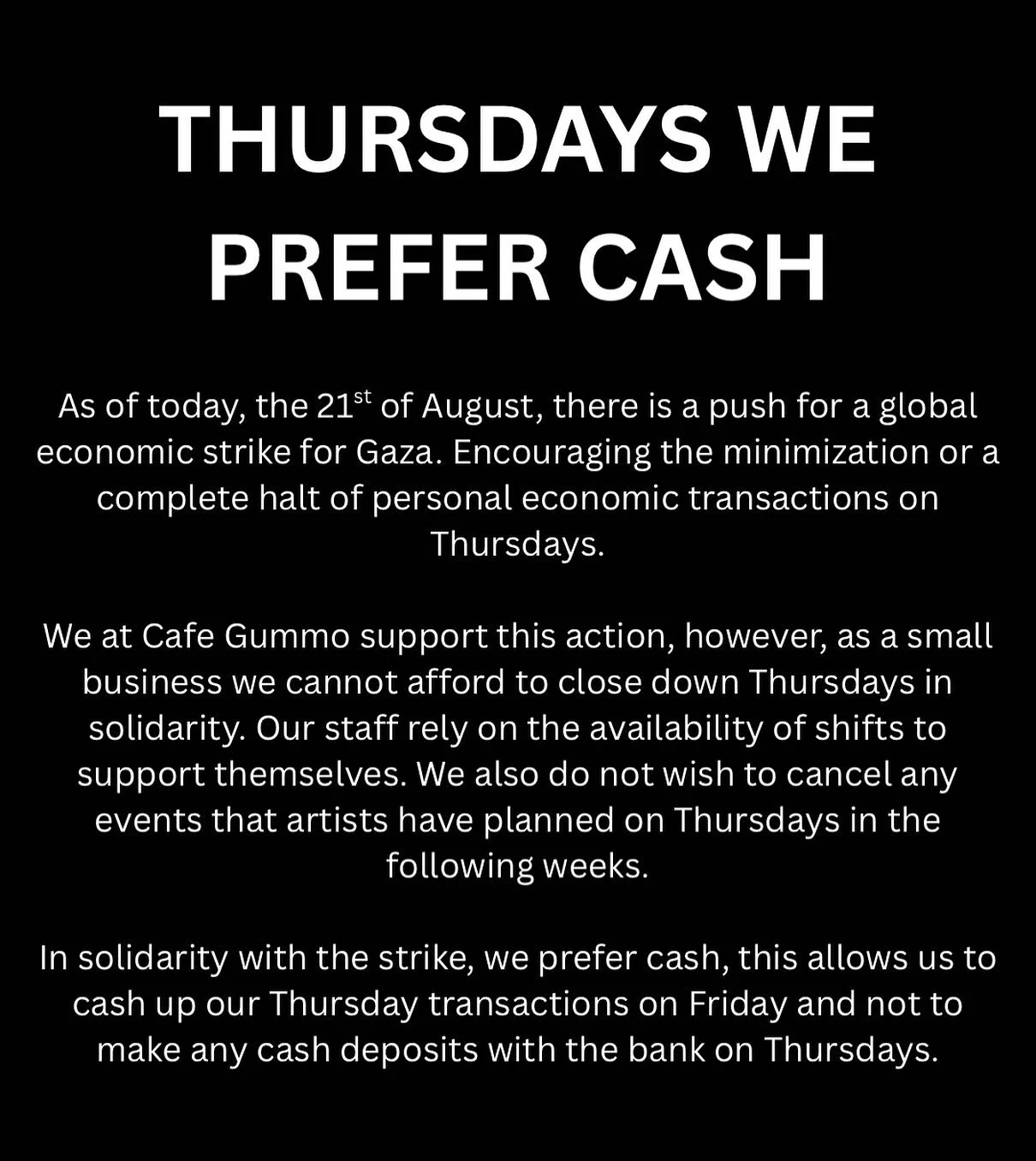 Opened in March 2019, Cafe Gummo is a loud and proud dive bar in the heart of Thornbury, Naarm/Melbourne, that has grown into a much-loved, community-driven live music venue. Strictly anti-fascist and pro-LGBTQIA+, Cafe Gummo has become a uniquely safe and inclusive space for punters and performers alike. The venue hosts live music of all genres, from your favourite local punk bands to experimental noise shows and regular drag performances, up to six nights a week. Cafe Gummo prioritises accessibility and inclusion, with $5 vegan meals on Tuesdays and Wednesdays, $6 pints on Hospo Night, and plenty of fundraisers and Free for Mob events. So come down for a beer and some pierogi, and enjoy Thornburyβs much-loved filthy princess!